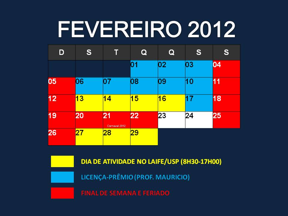 | DIAS DE TRABALHO NO LAIFE/USP | ||